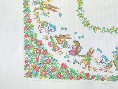 イースターエッグを運んでいる可愛らしい絵柄のクロスです。