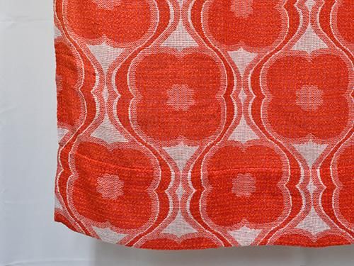赤いお花がデザインされたレトロな織柄のカーテンです。