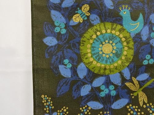 小鳥や植物がプリントされた大きめの壁掛けです。