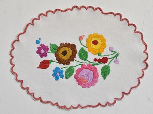 ハンガリー、カロチャ地域の図案が刺繍されています。