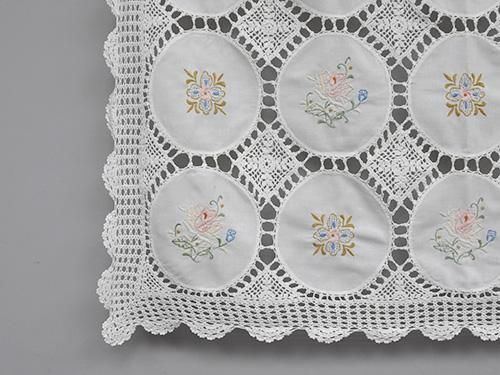 刺繍されたモチーフをレースでつなぎ合わせています。