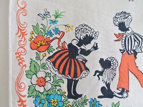影絵の男の子と女の子がプリントされた可愛らしいハンカチです。