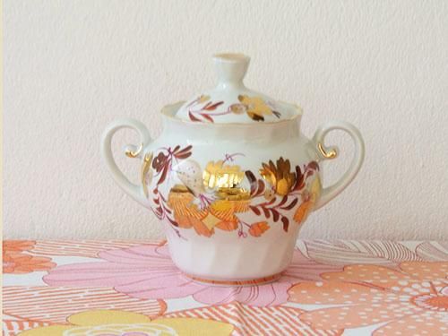 旧ソ連時代に生産されたお花柄のシュガーポットです。