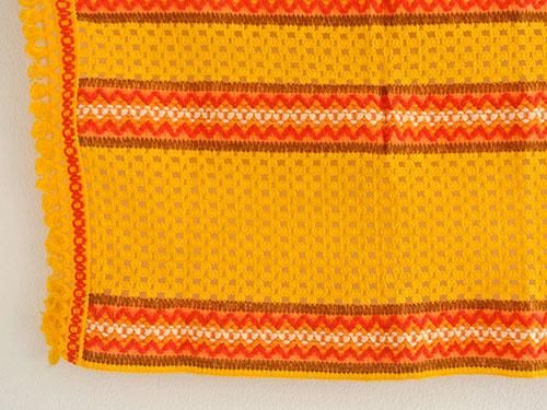 可愛らしい刺繍の入った透かし編みのテーブルセンターです。