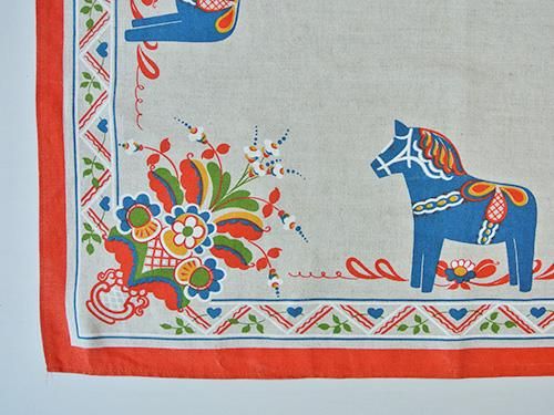 スウェーデンの民芸品、ダーラナホースがプリントされたクロスです。