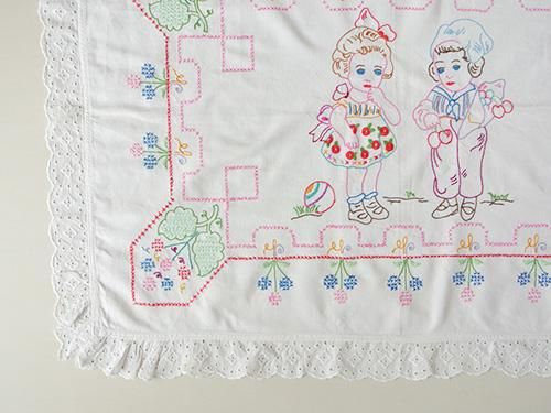 色とりどりの糸を使って刺繍された可愛らしいクロスです。