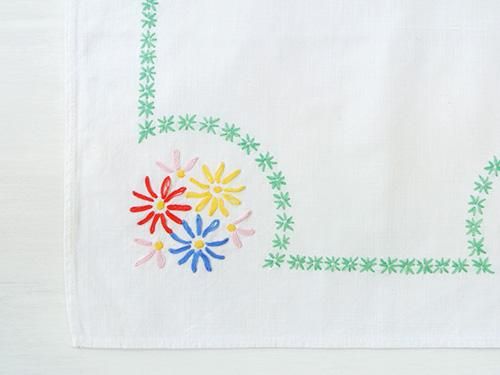 色とりどりのお花が刺繍された可愛らしいクロスです。