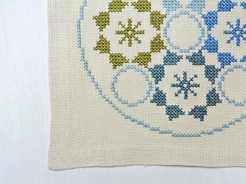 雪の結晶のような模様が刺繍されたミニクロスです。